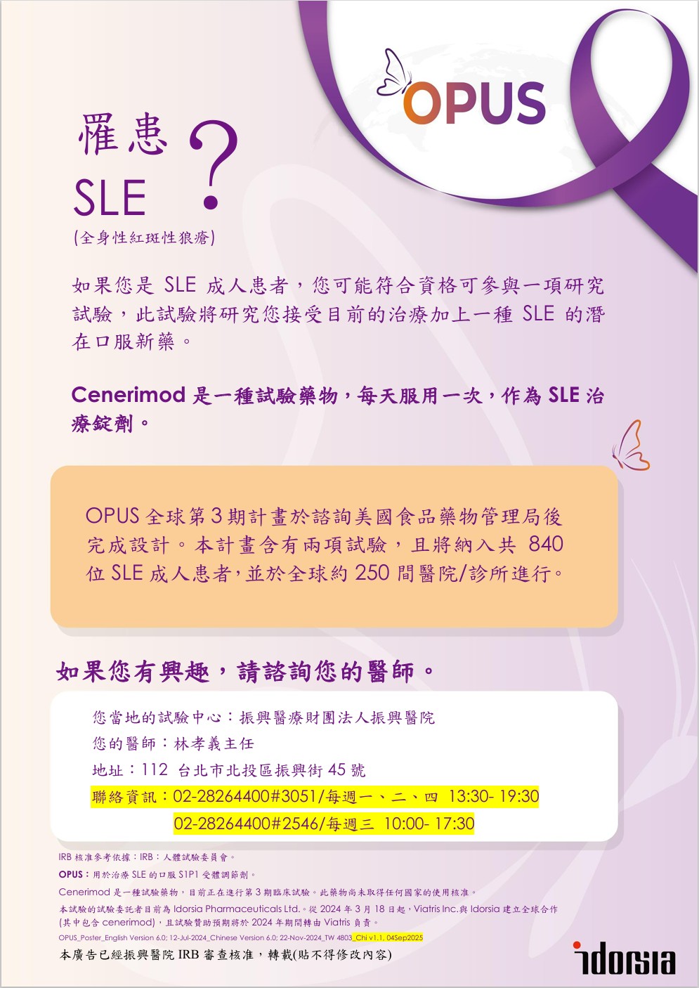SLE 臨床試驗案召募-(振興醫療財團法人振興醫院-林孝義主任主持)